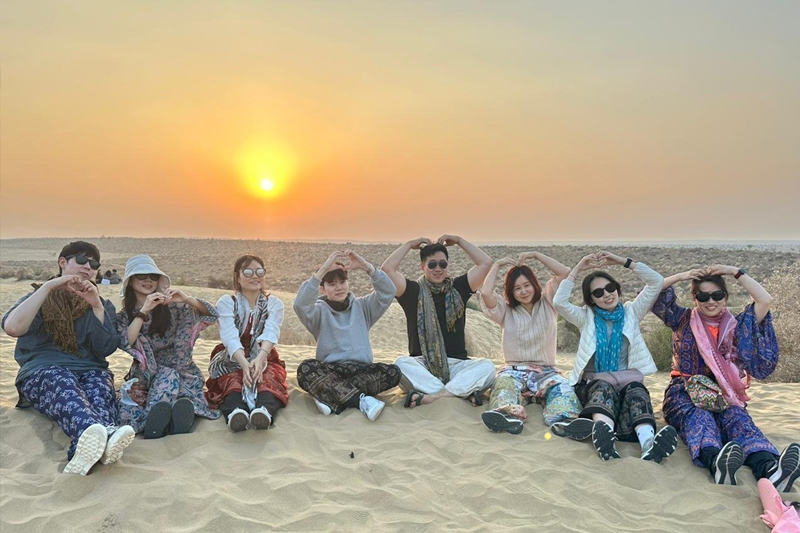 • Authentic Desert Experiences – We organize curated camel & jeep safarisDesert Camp & campfire nights