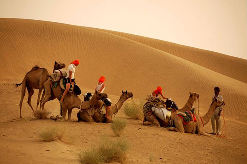 • Authentic Desert Experiences – We organize curated camel & jeep safarisDesert Camp & campfire nights